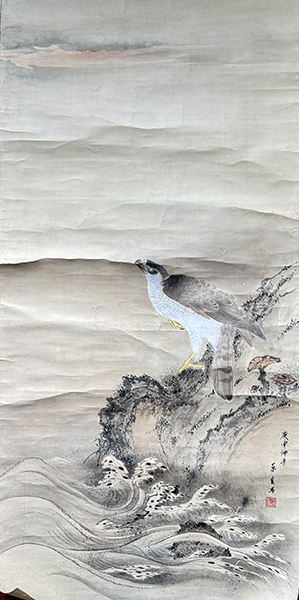 肉筆 海辺の鷹 東?写 落款 紙本まくり 124×57 ¥5,000 |