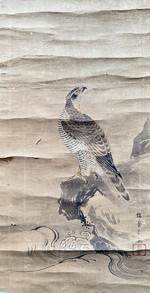 肉筆 鷹 端㘣齊画 落款 紙本まくり 痛み 77×34 ¥4,000 |