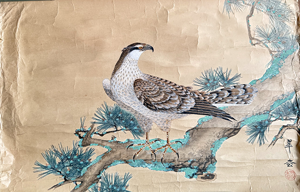 肉筆 鷹 翠枩筆 落款 彩画 紙本まくり 43×63 ¥5,000 |