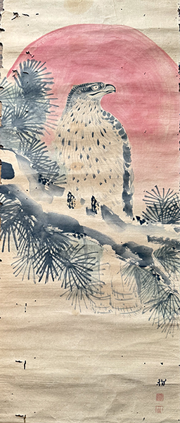 肉筆 鷹と太陽 一指 落款 紙本まくり 痛み 71×28 ¥2,000 |