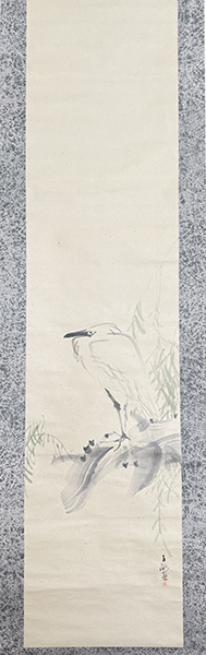 肉筆 白鷺 左洲画 落款 紙本幅 痛少 135×30 ¥10,000 |