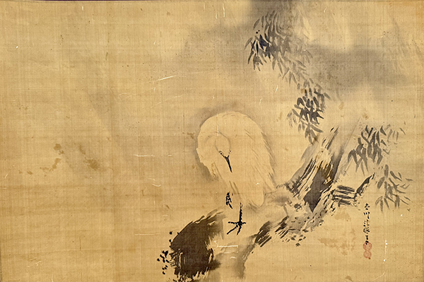 肉筆 白鷺 吉川法眼筆 落款 絹本幅 ヤケ・痛み少 39×57 ¥8,000 |