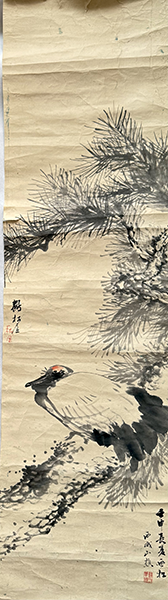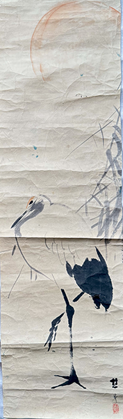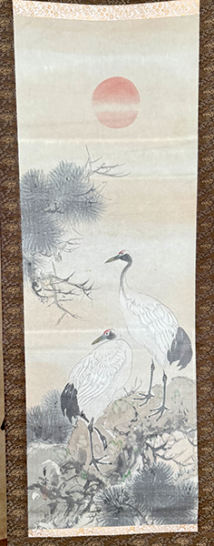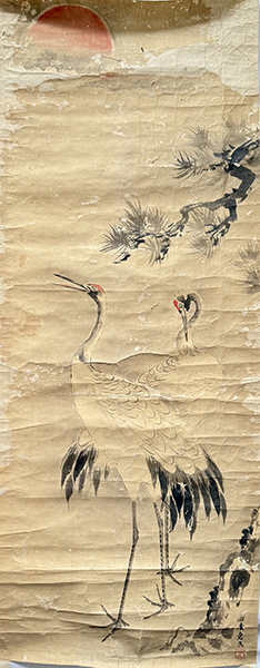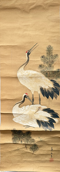 肉筆 鶴二羽 慶意画 落款 彩画 紙本まくり 痛み 104×42 ¥3,000 |