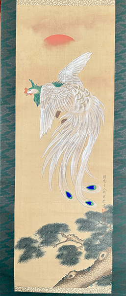 肉筆 鳳凰 ?園主人里恭画 彩画 絹本幅 105×36 ¥5,000 |