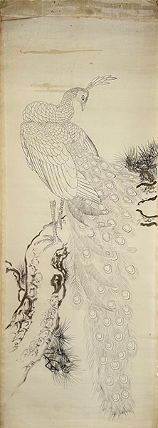 肉筆 孔雀 作者不詳 絹本まくり 160×54 ¥3,000 |