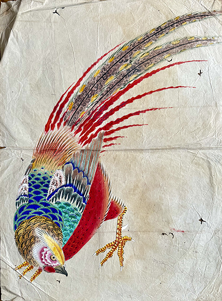 肉筆 キジ 作者不詳 彩画 紙本まくり 59×43 ¥10,000 |