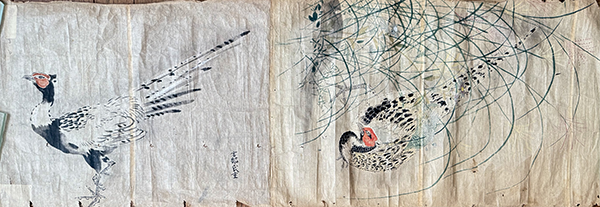 肉筆 キジ二羽 作者不詳 彩画 紙本まくり 120×40 ¥2,000 |