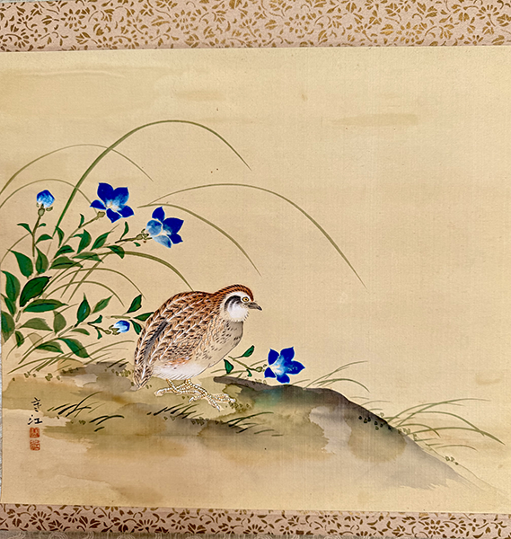 肉筆 うずら 宝江画 落款 彩画 絹本幅 37×43 ¥5,000 |