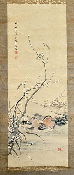 肉筆 おしどり 雲渓逸士俊 落款 彩画 絹本幅 痛少 113×41 ¥5,000 |