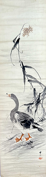 肉筆 あひる 雲?落款 彩画 紙本まくり 136×33 ¥5,000 |