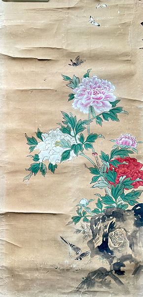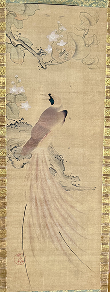肉筆 孔雀? 光琳印 彩画 絹本幅 103×35 ¥10,000 |