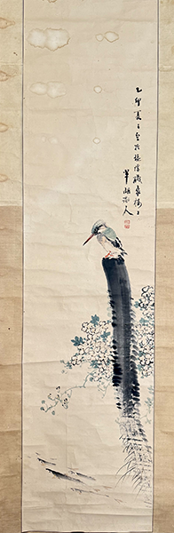 肉筆 カワセミ 荒井翠湖落款 彩画 紙本幅 135×33 ¥3,000 |
