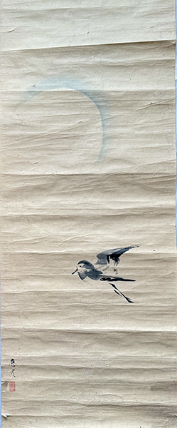 肉筆 月に燕 丸山應震落款 紙本まくり 95×25 ¥15,000 |