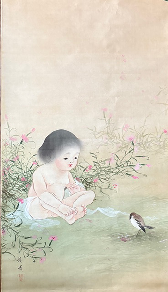 肉筆 幼女と雀 高取雅成 落款 彩画 絹本まくり 108×59 ¥60,000 |