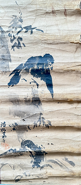 肉筆 からす二羽 法橋??落款 紙本まくり 痛 69×27 ¥10,000 |