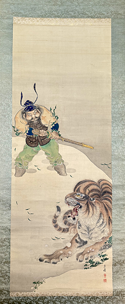 肉筆 加藤清正と虎 春壽 落款 彩画 絹本幅 112×43 ¥18,000 |
