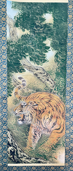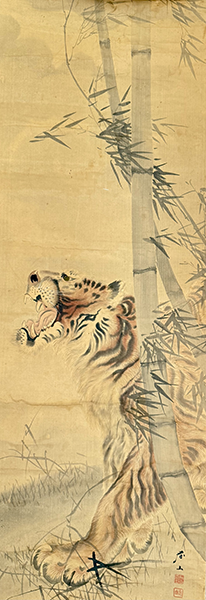 肉筆 竹に虎 春山 落款 彩画 絹本仮軸 115×40 ¥5,000 |