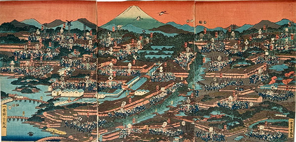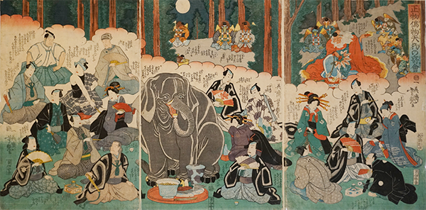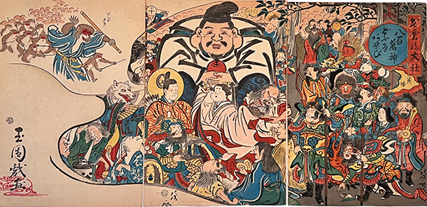 出雲乃大社 八百萬神どうけ阿そび 玉園画 3枚続 1877s 2・B・ろ 36×24×3 ¥160,000 |