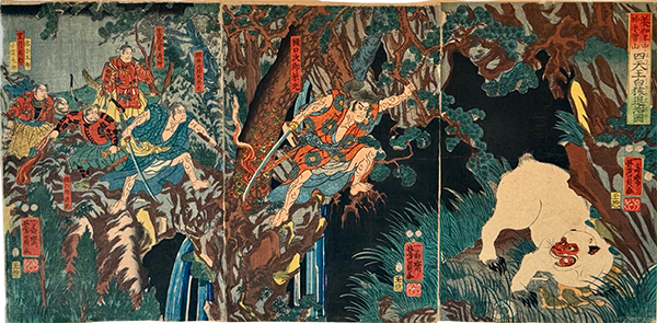 養和年中於木曾山四天王白猿退治図 芳員画 3枚続 1853 2・B・ろ 37.5×25.5×3 ¥200,000 |