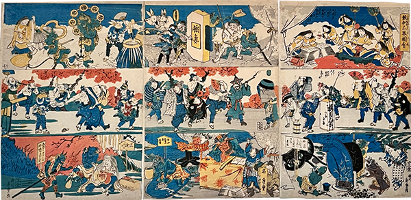 正物偽物天狗の奇会 芳艶画 3枚続 1863 2・C・ろ 36×24×3 ¥120,000 |